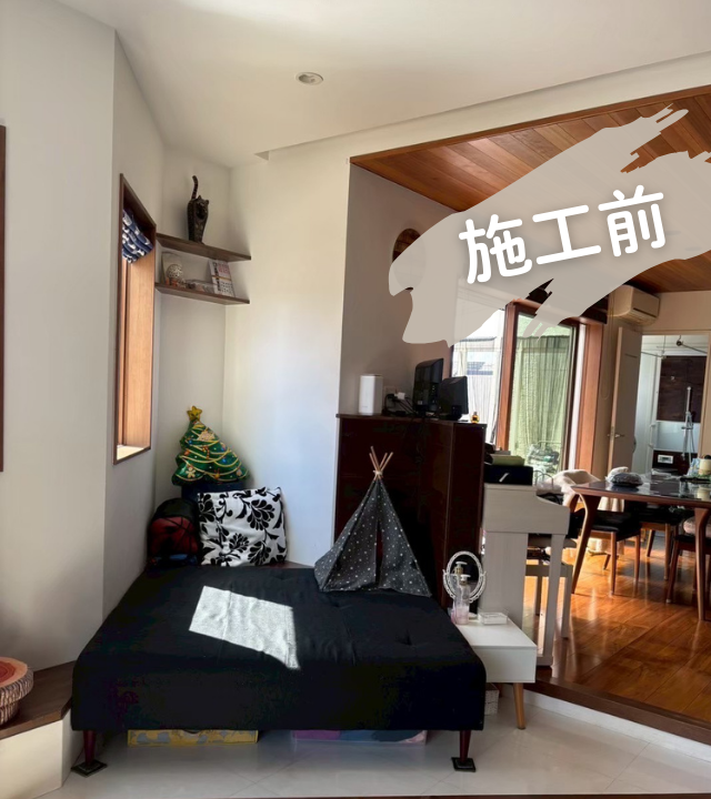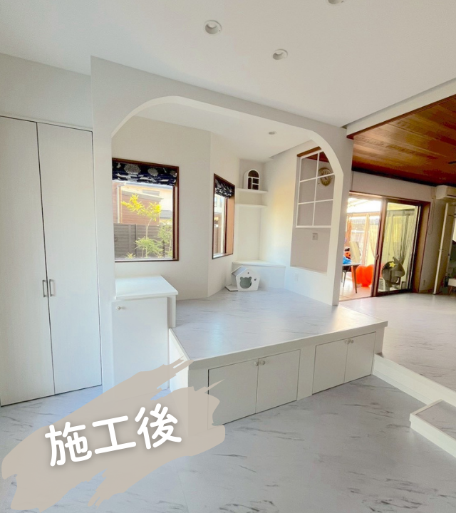 ダイニングスペースの床も白基調にさせていただき、デザインが統一され大変喜んでいただけたこと嬉しく思います。